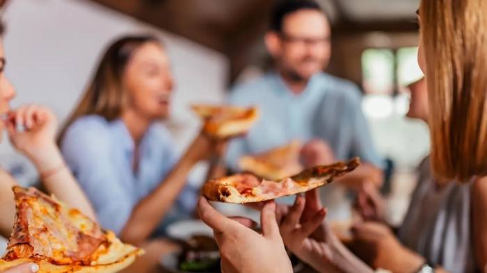 Hoy en día, los servicios de reparto operan incluso en ciudades relativamente pequeñas, por lo que todo el mundo puede comer pizza sin excepción.